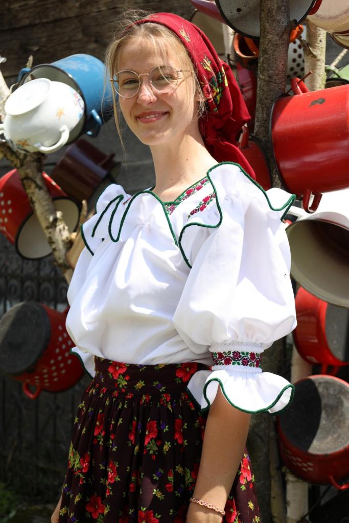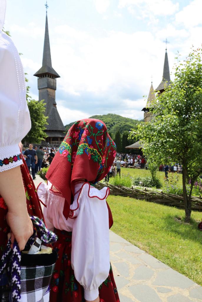Mein letzter voller Tag bricht an. Es ist Sonntag und nicht irgendeiner, sondern Pentecost: Pfingsten. Eine Woche später als in Deutschland habe ich das Glück, die Feiertage hier ganz traditionell zu erleben. Der Trachtenfundus von Mariana wird nun auch für uns zum Ankleidezimmer: alle weiblichen Gäste, noch zwei weitere außer mir, lassen sich traditionell einkleiden. Ehe ich mich versehe, trage ich Rock, Bluse, Kopftuch und Schuhe mit Absatz. So „weiblich“ habe ich mich schon lang nicht mehr gefühlt. Gleichzeitig füge ich mich nun aber optisch gut ein auf dem Weg zur Messe in Oncești und später in Bârsana. Eine Frau fragt sogar, ob sie ein Foto mit mir machen darf und hat sich dafür wohl die eine Person hier im Dorf ausgesucht, die am allerwenigsten rumänisch ist. Ich fühle mich geschmeichelt.