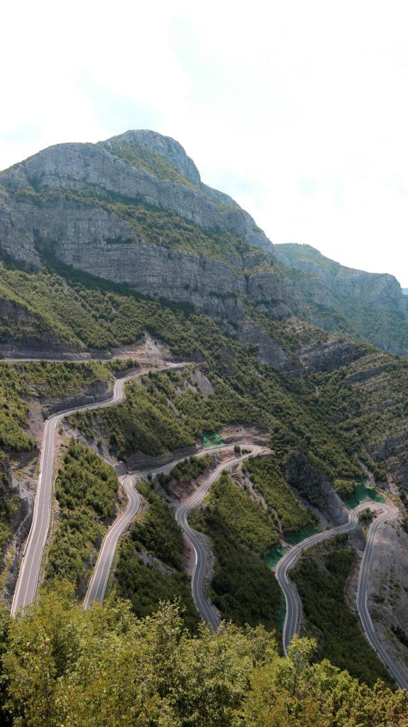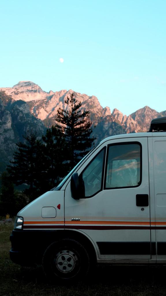 Arriving in Montenegro, Plav was our first and only stop. We parked by the lake, swam in the ice-cold water and dried in the sun. Our stopover turned into a two-night-stay. Albania eventually made me forget about the hardships of driving at all. It took me one day only to remember, why I was so in love with Albania the last time I travelled here. The route behind the border was like a road trip fairy tale: 50 km of streets winding right through the mountains with decent road conditions, dreamlike views and dizzy heights. On the way we saw cows, pigs, sheep, goats, donkeys and even a turtle on the road before finally turning into the valley towards Theth. We went uphill again from there, but with significantly narrower roads and oncoming traffic. For almost an hour and a half we drove up and enjoyed the view. I got into an absolute flow state with Fred as I drove, became one with the car and knew exactly how to make my way between the crash barriers, trees and other cars. Just before Theth we helped a group of Albanians who stranded because of a broken tube in the car. Never have I been more happy to give away an old piece of tube and cable ties from my car.